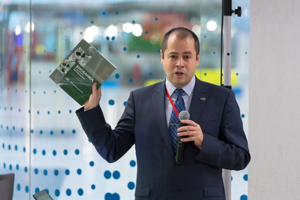 Sergey Anisimov (NBS and ISBER Regional Ambassador in Russia) holding a copy of the Russian translation of the ISBER Best Practices 4th Edition